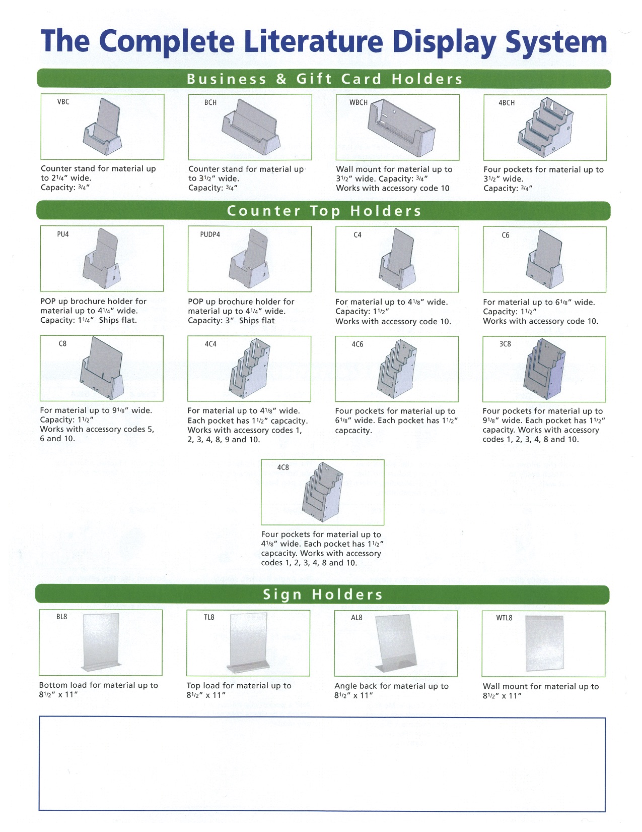 Pop Brochure Holders offers the complete literature display system. From business card holders to sign holders to wall mountable holders, we’ve got it all!